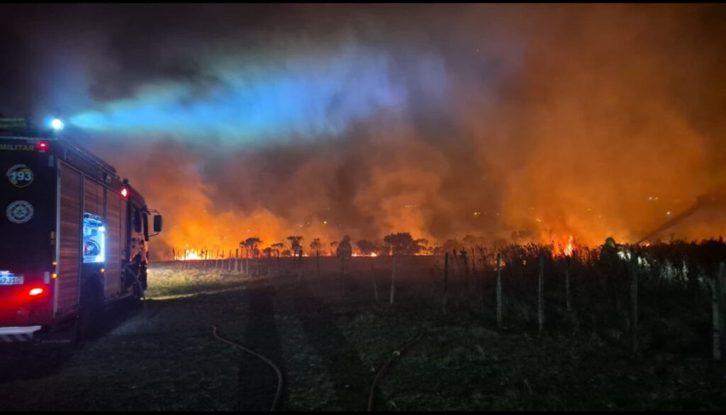 Um incêndio destruiu 7,5 hectares de vegetação na noite de sexta-feira (22) em Palmeira das Missões, no noroeste do Estado. A área queimada equivale a cerca de sete campos de futebol.